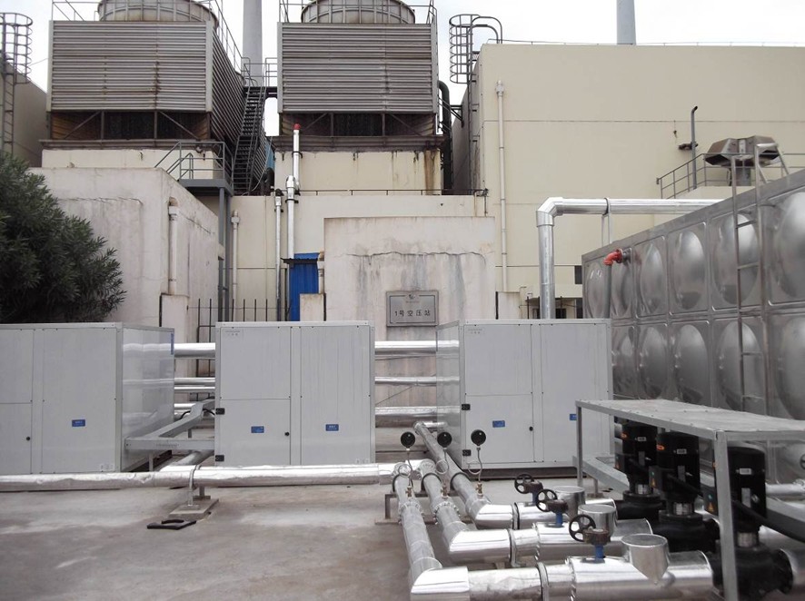 工程使用了3臺(tái)天舒熱能空氣源熱泵熱水機(jī)組作為主要加熱設(shè)備,每天供應(yīng)100噸55℃的生活熱水,供1800名員工洗浴使用。